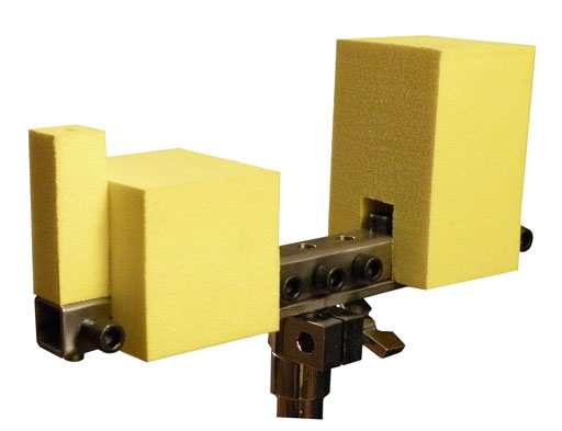 A Single Resilient FlexMount, shown below. Two mounts are needed to play one drum, as seen above: